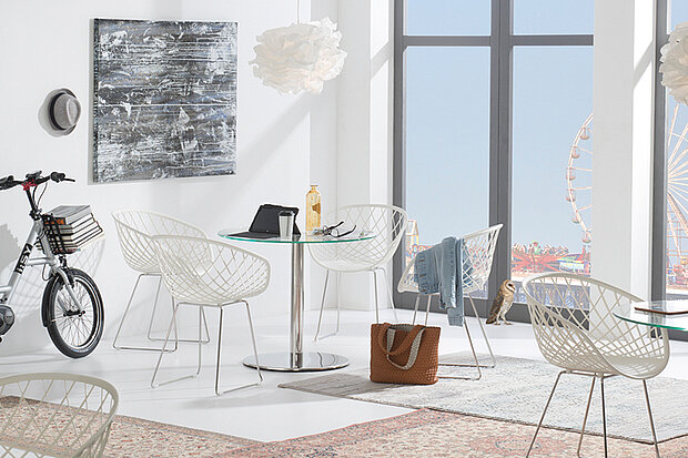 Die verschiedenen Gestellvarianten sorgen dafür das dieser Designertuhl in jeden Raum harmonisch eingegliedert werden kann.